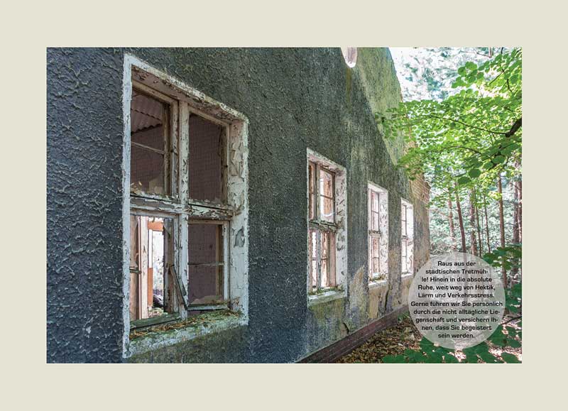 kombiniert dokumentarische Aufnahmen von Langzeit leer stehenden Immobilien (oder „Lost Places“) in Brandenburg mit aktuellen Texten von Immobilienangeboten aus der Schweiz – wo der Immobilienmarkt relativ ausgetrocknet ist.